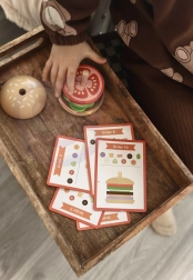 La composition de burger en bois WOOPIE GREEN apporte aux enfants dès 3 ans une savoureuse portion d’apprentissage et de divertissement. À l’aide des cartes d’instructions, les petits chefs choisissent les bons ingrédients, comparent leur couleur et leur épaisseur et les empilent dans le bon ordre. Ils peuvent tout aussi facilement créer leurs propres “recettes”, développant ainsi créativité et imagination.