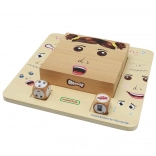 Les quatre blocs en bois permettent aux enfants de composer jusqu’à 64 mimiques différentes illustrant la joie, la tristesse, la peur ou la colère, et d’apprendre comment les expressions du visage modifient le sens des émotions.