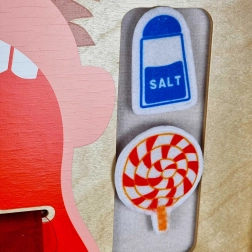 Une grande langue mobile avec des zones de saveurs clairement indiquées et des aliments à scratch apprennent aux enfants à distinguer le sucré, le salé, l’acide et l’amer.