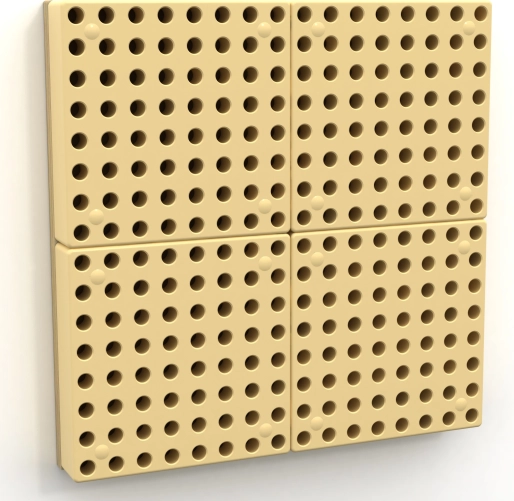 La plaque perforée composée de 4 éléments de 20 × 20 cm permet d’insérer des chevilles colorées et de créer des motifs originaux développant la motricité fine et l’imagination.