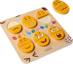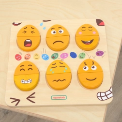Le tableau en bois pour l’apprentissage des émotions de la marque MASTERKIDZ est un excellent outil didactique pour la maison, la maternelle et les coins jeux. Les enfants peuvent librement combiner les parties supérieure et inférieure des visages et créer ainsi des expressions joyeuses, tristes, surprises ou renfrognées. Ils s’entraînent naturellement à reconnaître les émotions et apprennent à les nommer et à les exprimer non verbalement.
