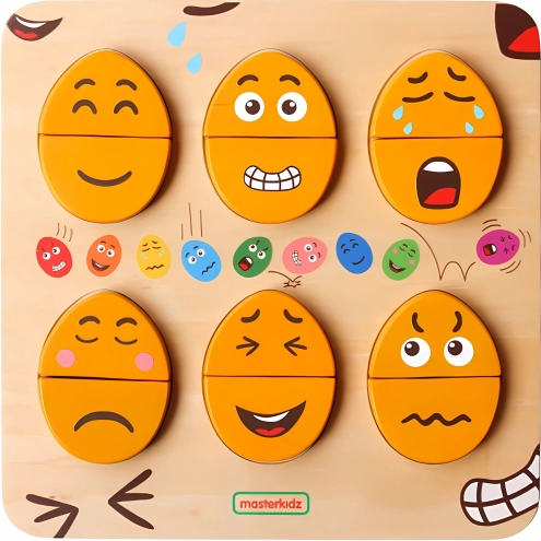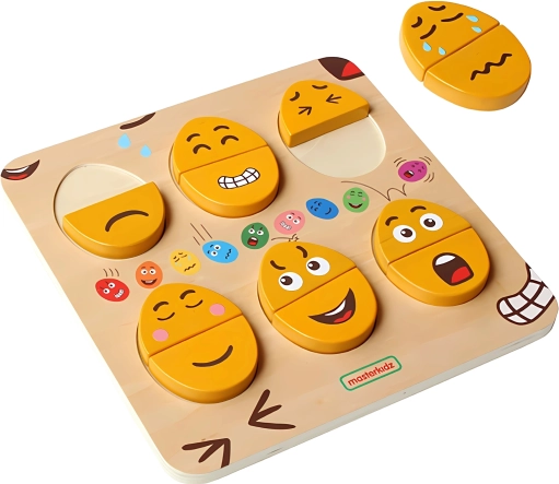 Découvrez un jeu ludique et éducatif pour les plus petits : le tableau en bois MASTERKIDZ qui apprend aux enfants à reconnaître et à exprimer les émotions. En combinant les parties supérieure et inférieure des visages, les enfants créent différentes expressions et développent leur intelligence émotionnelle, leur empathie, leur motricité fine et leurs compétences de communication. La conception en bois robuste et les couleurs agréables favorisent la concentration et le jeu autonome.