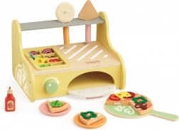 Un petit four en bois avec porte et bouton rotatif plonge les enfants dans le jeu de cuisine. Idéal pour les premières « cuissons » et le service de pizzas.