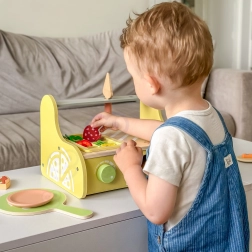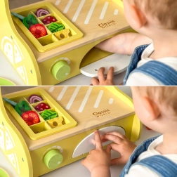 Grâce aux nombreux accessoires, les enfants entraînent la motricité fine, la logique lors de l’assemblage et les compétences sociales lors de la cuisine et du service en commun. Le jouet est fabriqué en bois certifié FSC et en matériaux sûrs, respectueux des enfants et de la nature.