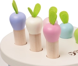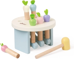 - Objectif du jeu : La tâche de l’enfant est d’enfoncer chaque carotte qui dépasse. Si le coup est suffisamment fort, la carotte tombe hors de la structure.