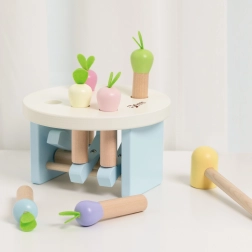 Les couleurs pastel délicates attirent l’attention et augmentent l’intérêt de l’enfant pour le jouet. Le jeu consiste à entraîner l’habileté des enfants en enfonçant avec précision les carottes qui ressortent des ouvertures.