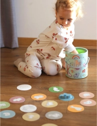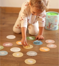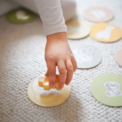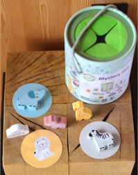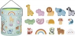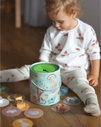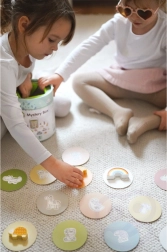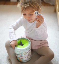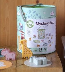 En jouant avec la Boîte Mystérieuse, les enfants choisissent une des 15 cartes et devinent par le toucher quelle figurine est cachée dans la boîte, tout en apprenant à reconnaître sa forme. Le jeu développe le sens du toucher, la motricité fine et la concentration. Le set offre diverses façons créatives de jouer, comme l'appariement, l'apprentissage des couleurs, les noms des animaux et la construction de tours.