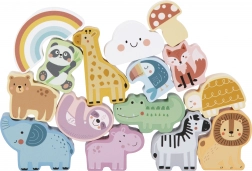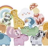 Comprend 15 figurines en bois comprenant des animaux, un arc-en-ciel, un nuage et un champignon pour un jeu varié et éducatif.