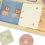 Le tableau de manipulation en bois de Tooky Toy offre une expérience créative et éducative. Il est équipé de trois verrous différents avec des images cachées d'animaux qui stimulent l'imagination des enfants.