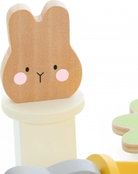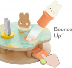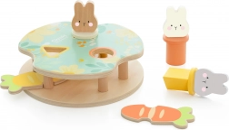 Le jeu Lapins Sautillants est parfait pour développer la capacité de différenciation des couleurs et des formes de l'enfant. Votre tâche est de placer trois adorables lapins dans les trous correspondants et de les assortir par couleur et forme. Lorsque vous appuyez sur les morceaux de carotte, les lapins sautent ! Le jouet est fabriqué en bois de haute qualité et n'a pas de bords tranchants, il est donc sûr pour les enfants.