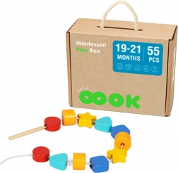 Un kit d’enfilage comprenant 11 blocs de formes variées et une ficelle. Favorise la motricité fine et la coordination œil-main.