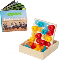 - Petit livre illustré « Grand et petit » : Un livret éducatif rempli d’illustrations et de textes captivants, qui stimule l’imagination.
