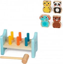 Un jouet classique avec une structure robuste en bois, des chevilles colorées et un marteau. Favorise le développement de la pensée logique et la discrimination des couleurs.