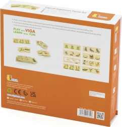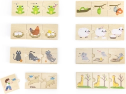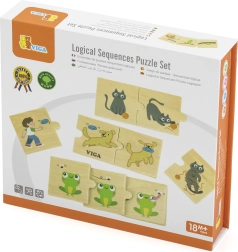 Un ensemble de puzzles en bois ludique et éducatif de la marque VIGA apprend aux enfants à associer les actions des animaux dans le bon ordre. Il contient 24 pièces en bois formant 8 séquences logiques (par ex. rapport d’un chien ou une girafe qui arrache des feuilles d’un arbre). Il développe la pensée logique, le vocabulaire, la concentration, la motricité fine et la coordination visuelle, et il convient dès 18 mois.