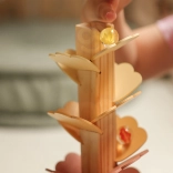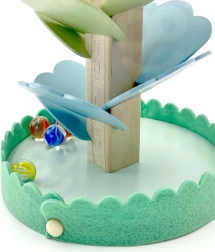 Chaque impact de la bille sur une « feuille » colorée produit un son délicat rappelant le cymbalum. Les enfants associent ainsi stimuli visuels et auditifs et développent leur perception sensorielle.