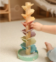Le petit arbre musical en bois, connu comme arbre à billes, transforme chaque descente de bille en un concert apaisant. Les « feuilles » multicolores forment la piste que les billes empruntent vers le bas et, à chaque contact, elles produisent de agréables et douces notes. Le jouet favorise la concentration, la patience et la curiosité naturelle.