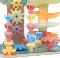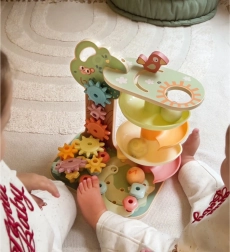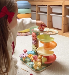 - Circuit à billes – Observer les billes roulant sur les niveaux en cascade enseigne la concentration, le suivi des mouvements et procure beaucoup de plaisir