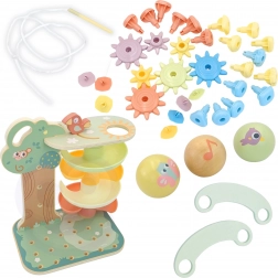 Arbre Actif WOOPIE GREEN est un ensemble éducatif soigneusement conçu, combinant jusqu'à quatre activités différentes, soutenant le développement global de l'enfant dès l'âge de 18 mois. Il comprend une tour à billes colorée, des engrenages sensoriels, un marteau de chevilles et des activités de couture créatives – tout cela dans une belle finition pastel, assuré par des matériaux sûrs et durables.