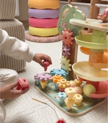 - Engrenages – Faire tourner et déplacer les roues offre des sensations tactiles, enseigne la mécanique et favorise le développement sensoriel