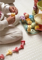 - La motricité fine – Manipuler des billes, chevilles et enfilage, l'enfant pratique la précision des mouvements de la main et des doigts