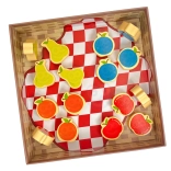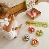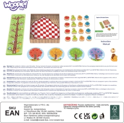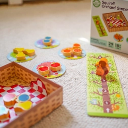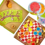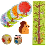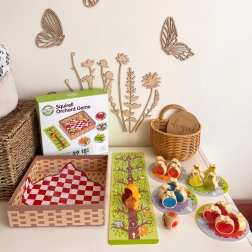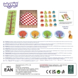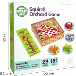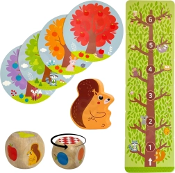 Le jeu familial ÉCUREUIL AU VERGER de WOOPIE GREEN est un premier jeu de plateau idéal pour les tout-petits. Les enfants lancent le dé ensemble, récoltent de jolis fruits en bois colorés sur l’arbre et les placent dans le panier. Si l’écureuil apparaît, l’un des fruits collectés retourne sur l’arbre – suspense et joie de la victoire garantis.