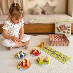 Le jeu soutient le développement précoce et apprend aux enfants à coopérer plutôt que rivaliser. Grâce à des règles simples et à des composants en bois solides, il ravira les jeunes joueurs dès 18 mois, tout en amusant les frères et sœurs plus âgés et les parents.