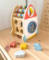 La fusée en bois est un jouet multifonction qui propose six activités différentes pour développer les compétences des enfants :