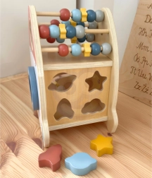 Le jouet aide à développer la motricité fine grâce à des éléments interactifs tels que des perles et le tri des formes.