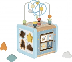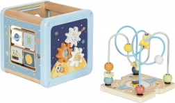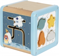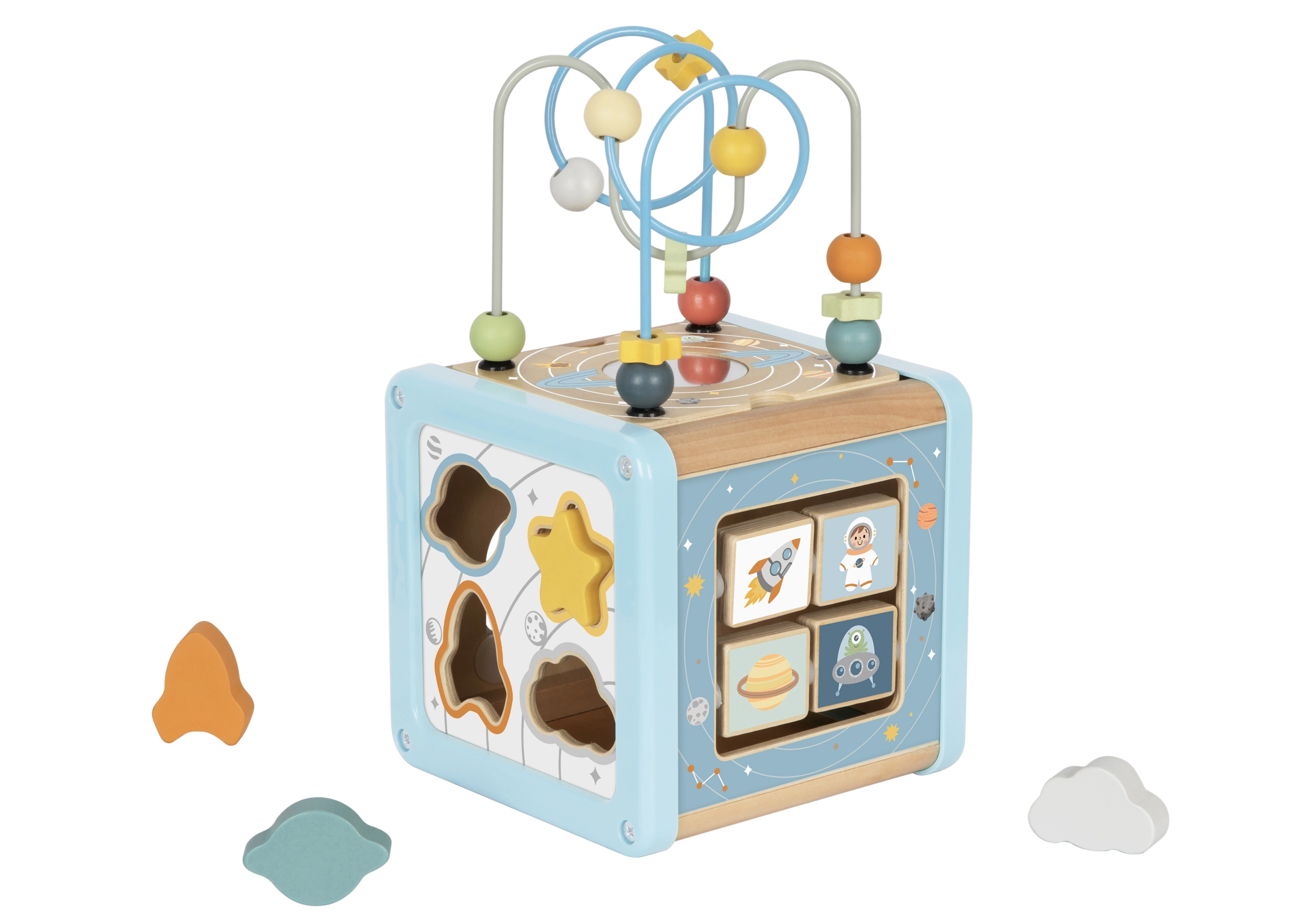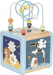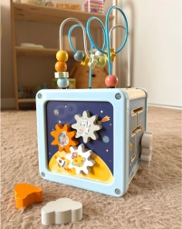 Découvrez un cube d’activités en bois multifonction sur le thème de l’espace, qui favorise le développement naturel de l’enfant. Les enfants aimeront faire glisser les perles dans le labyrinthe, faire tourner les blocs illustrés avec fusée, planète et astronaute, trier les formes et actionner les roues dentées colorées. Chaque face propose une activité différente pour développer la motricité fine, la coordination œil–main et la curiosité.