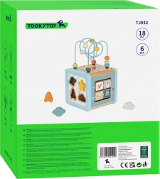 Les perles colorées sur des tiges métalliques développent la coordination œil–main et la patience. La partie supérieure avec le labyrinthe peut être rentrée à l’intérieur du cube pour un rangement facile.