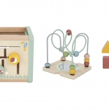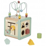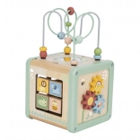 Le cube d’activités en bois WOOPIE GREEN aux teintes pastel douces combine jeu et apprentissage en un seul jouet. Il propose un labyrinthe de perles, un trieur de formes, des blocs rotatifs avec animaux, des roues dentées et des éléments coulissants pour développer la motricité fine, la logique et la coordination. Sa conception sûre avec des bords lisses et un bois de qualité en fait un choix idéal pour les enfants à partir de 18 mois et un excellent cadeau.