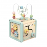 Ce cube en bois multifonction favorise le développement naturel de l’enfant par un jeu riche de sens. Les couleurs pastel attirent l’attention, tandis que les activités variées entraînent la motricité fine, la coordination œil–main, la pensée logique et la reconnaissance des formes et des couleurs.