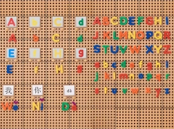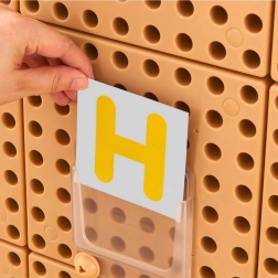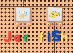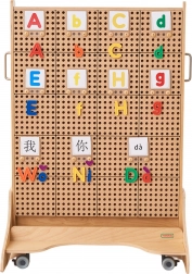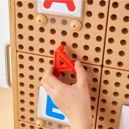 Les lettres à chevilles se glissent facilement dans les panneaux perforés. Le stimulus tactile et visuel soutient la mémorisation, la conscience phonémique et la bonne orientation des lettres.