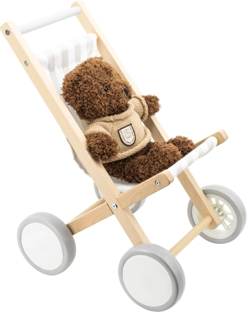 La poussette est compatible avec les poupées et peluches jusqu’à 38 cm, ce qui en fait un accessoire apprécié de la chambre d’enfant. Son look naturel et épuré s’intègre parfaitement aux intérieurs modernes comme traditionnels.