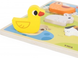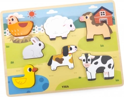 Découvrez les puzzles en bois Viga sur le thème de la ferme – un ensemble avec 1 plateau coloré et 7 figurines d’animaux. En jouant, les enfants exercent leur motricité fine, leur coordination œil‑main, leur raisonnement logique et leur mémoire. Grâce aux pièces plus épaisses, les animaux peuvent aussi être utilisés comme figurines indépendantes pour un jeu créatif.