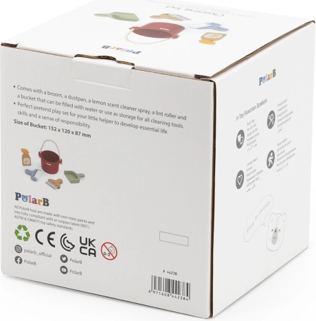 Offrez aux enfants la joie du jeu d’imitation avec le set de ménage en bois POLARB. Le seau avec une anse en corde résistante sert aussi d’endroit malin pour le rangement pratique de tous les outils. Les composants en bois sont agréables en main, durables et visuellement attractifs grâce aux douces teintes pastel.