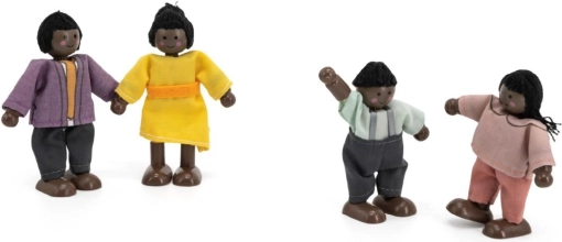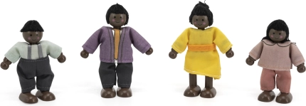 Viga famille de poupées en bois avec vêtements textiles, 4 pcs, peau foncée