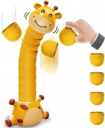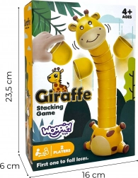 Règles du jeu: Les joueurs s'alternent pour poser des piles les unes sur les autres pour construire la tour la plus haute ayant la forme du cou de la girafe. La roue de la chance détermine combien de pièces doivent être ajoutées. Le jeu se termine lorsqu'un joueur fait tomber la girafe.