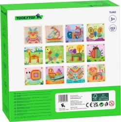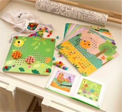 Cette superbe mosaïque est conçue pour les enfants à partir de 3 ans et comprend 10 tableaux avec modèles et 222 chevilles colorées. Elle contient également un sac en matériau pour stocker toutes les pièces.