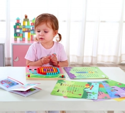 La mosaïque en bois avec chevilles colorées et images joyeuses apporte beaucoup de joie aux enfants et stimule leur développement créatif.