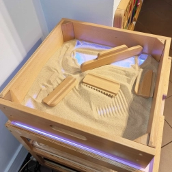 Le cadre en bois Masterkidz pour peinture sur sable est un outil pédagogique bien pensé qui maintient le sable en sécurité dans le cadre et sur la table – les enfants créent en s’amusant, les parents ont un minimum de nettoyage. Sa fabrication de qualité et ses matériaux durables sont idéaux pour un usage quotidien à la maison, en maternelle et dans les aires de jeux publiques. Il s’inscrit parfaitement dans l’approche Montessori.