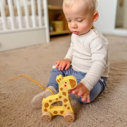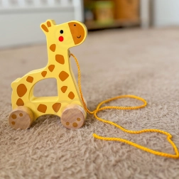 Cette élégante girafe à tirer en bois, au toucher agréable et aux bords arrondis, est conçue pour les petites mains et les grandes aventures. Les enfants la tirent facilement grâce à la ficelle et observent leur nouveau compagnon rouler derrière eux. Idéale comme cadeau, apprécié pour son design et sa qualité.