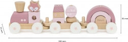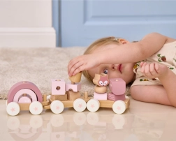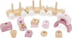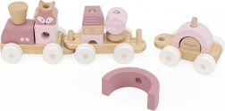 Adorable petit train en bois rose de la gamme PolarB de la marque Viga, il ravira chaque enfant. Il se compose de 3 wagons et 14 blocs de formes variées, à combiner et empiler librement. Grâce à ses douces couleurs pastel, à sa fabrication en bois sûre et à ses formes agréables, il est idéal pour le développement de la motricité fine, de la coordination et de la créativité dès 18 mois.