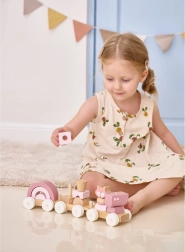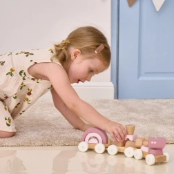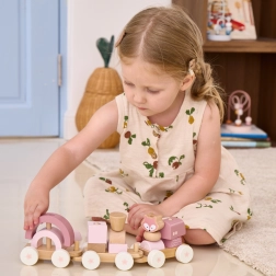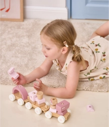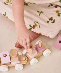 Le train en bois PolarB, dans de tendres tons roses et naturels, offre d’infinies possibilités de jeu. Les enfants peuvent relier les wagons, construire des combinaisons originales de blocs ou jouer séparément avec chaque élément. Les formes pratiques tiennent bien dans les petites mains et stimulent l’adresse ainsi que l’imagination.