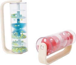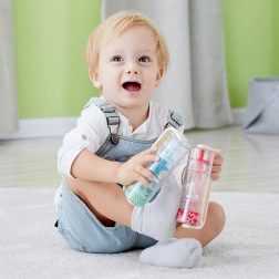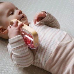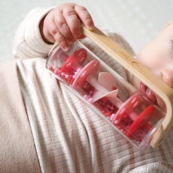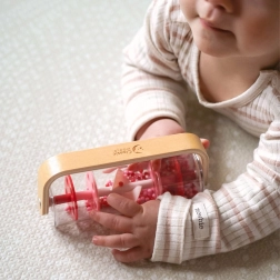 Ce bâton de pluie rouge associe bois naturel et corps transparent rempli de billes qui s’écoulent en douceur lors des mouvements pour créer un son relaxant et rythmé. Les enfants peuvent secouer, faire tourner à 360° et observer les perles qui descendent de la partie supérieure vers le bas – une excellente stimulation pour la vue, l’ouïe et la motricité fine.