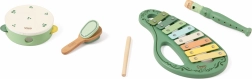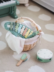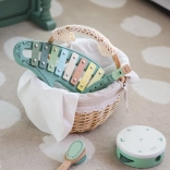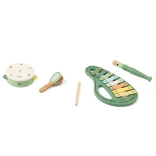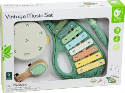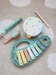Ce set stylé au look vintage comprend tout ce dont les petits ont besoin pour explorer le monde des sons : cymbalettes (xylophone), tambourin, flûte à bec/recorder, castagnette et baguette. Grâce à la combinaison du bois et du métal, les instruments offrent un son agréable et résistent à un usage quotidien.