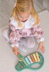 Les instruments sont en bois laqué avec des peintures non toxiques et possèdent des bords arrondis pour un jeu en toute sécurité pour les tout-petits.