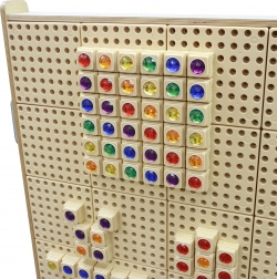 Un maillage dense de trous permet de fixer solidement des chevilles, vis, engrenages, tubes et autres éléments pour créer des motifs et des solutions mécaniques.