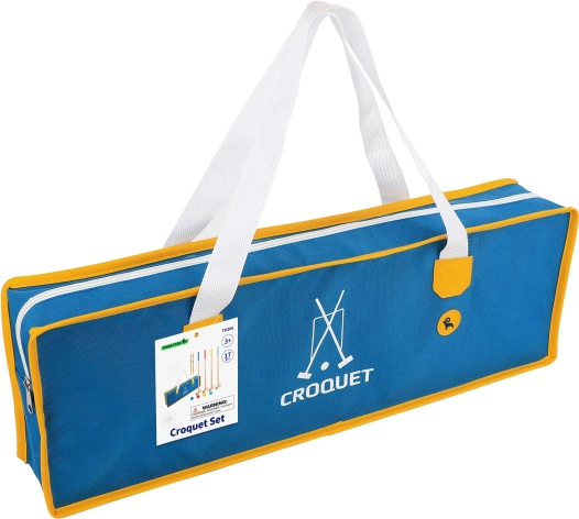 Le contenu du coffret couvre tout le nécessaire pour jusqu’à 4 joueurs : maillets, boules, piquets et un sac de transport pratique pour ranger et emporter facilement. Le croquet favorise l’activité physique, le jeu d’équipe et le fair-play.
