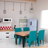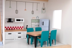 Découvrez la magie de l’architecture moderne dans l’univers des enfants. La maison de poupées en bois TOOKY TOY possède 3 niveaux riches en détails – cuisine avec salle à manger et salle de bain au rez-de-chaussée, spacieux salon au premier étage et chambre cosy avec balcon dans les combles. Le set inclut des meubles et des décorations qui donnent à chaque pièce une atmosphère réaliste.